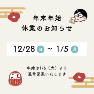 年末年始 休業日のご案内です。